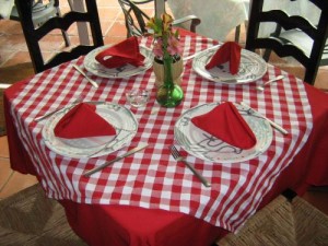 * Manteles, delantales, gorras.